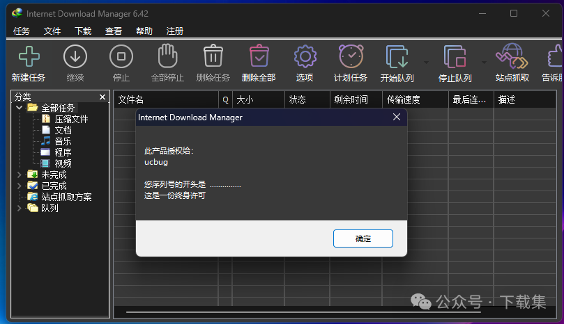 完成上述步骤后,再打开IDM,在注册界面中你会看到已经授权,并且是终身许可!