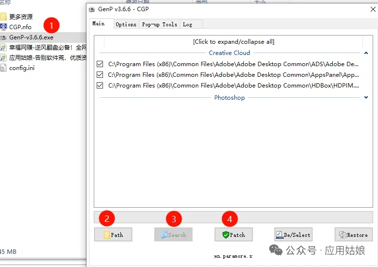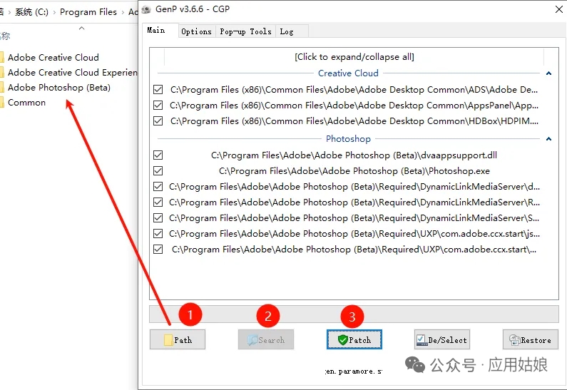 1、下载解压安装包, 如没有解压软件,可复制下载(http://urlqh.cn/mV6Wu);2、右键管理员身份运行【GenP-v3.6.7.exe】;3、打开 GenP 点 “Search” 搜索相关文件。搜到后点 “patck” 自动完成补丁安装。单个 Adobe 应用打补丁:点 “path” 选应用所在文件夹。再点 “Search” 找文件。最后点 “patck” 完成补丁。